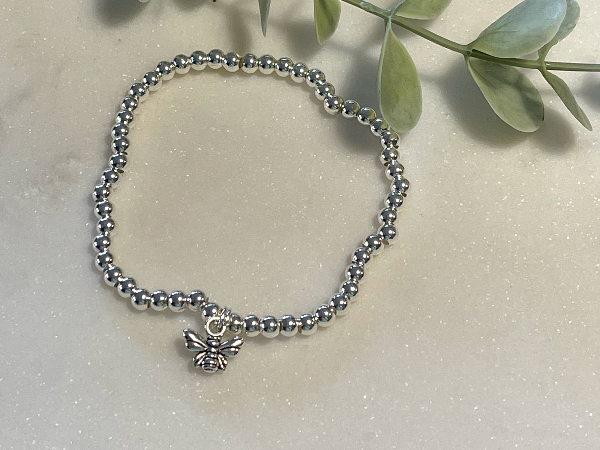 Our stacking bracelet is handmade by us on a high-quality jewellery elastic with Silver plated beads.