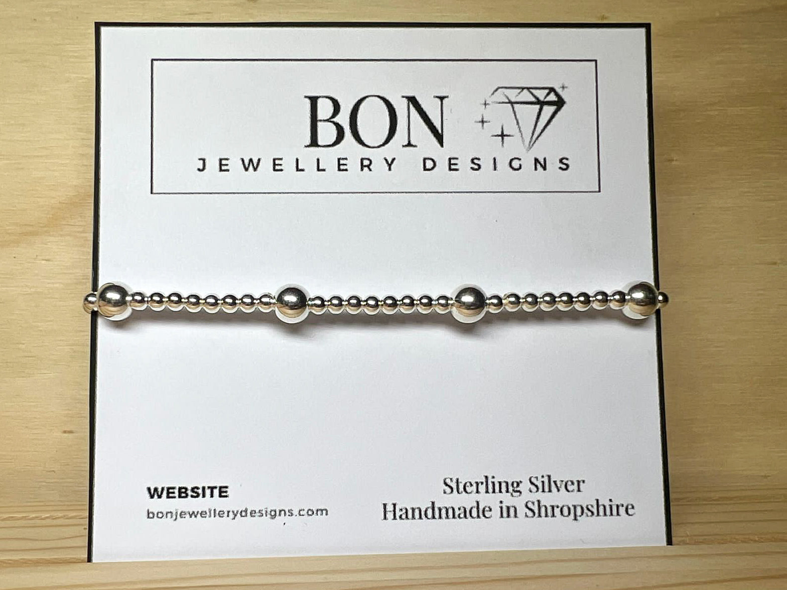 Our stacking bracelet is handmade by us on a high-quality jewellery elastic with sterling silver beads.