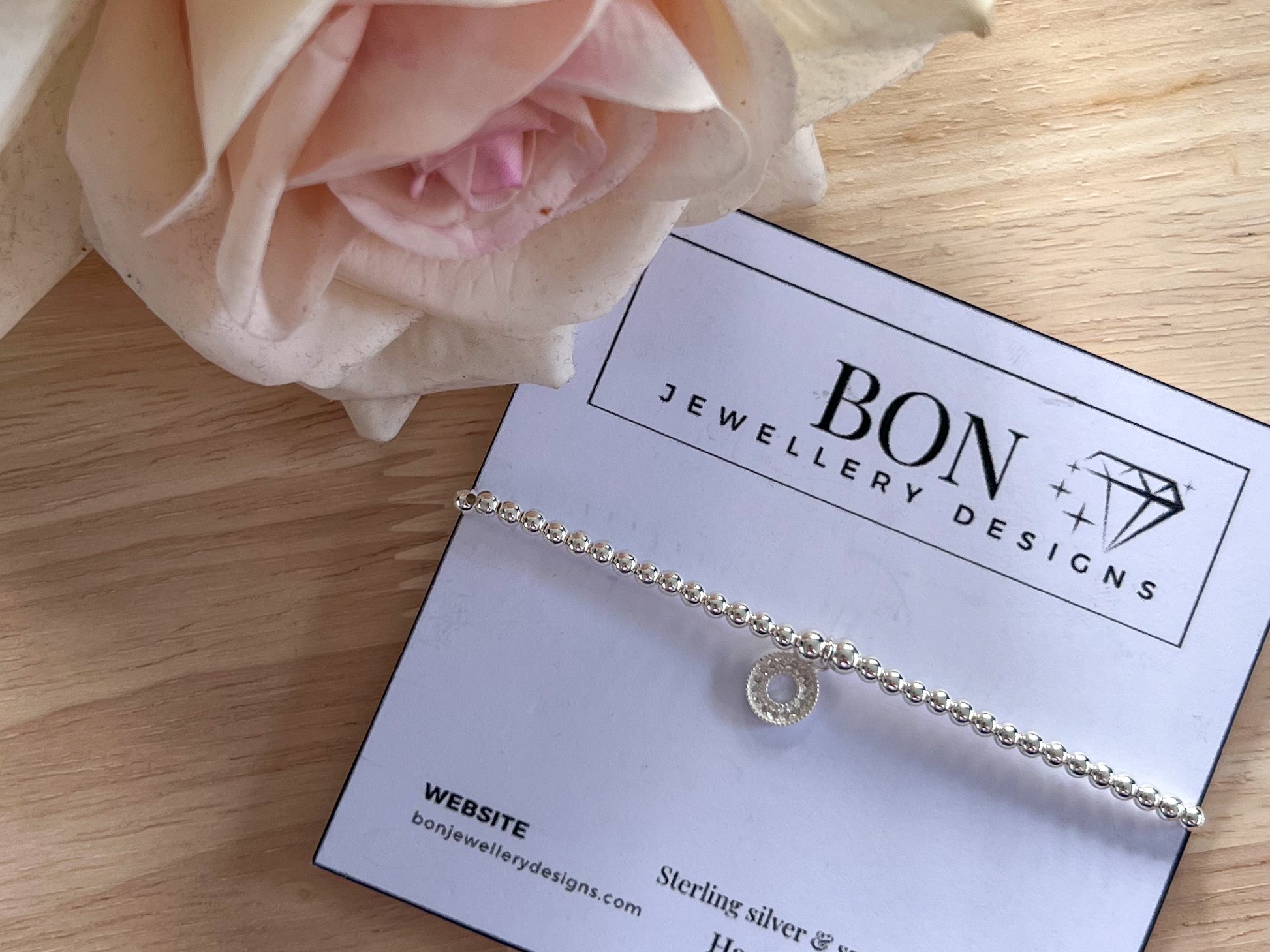 Our stacking bracelet is handmade by us on a high-quality jewellery elastic with sterling silver beads.